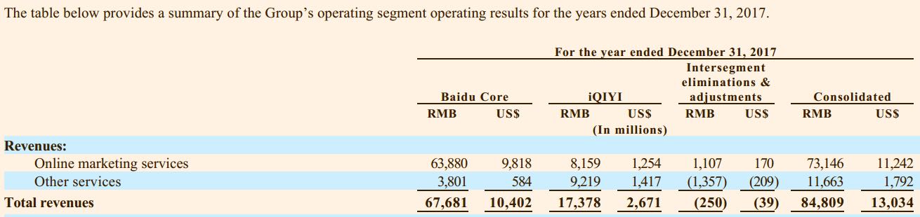 3. 互联网视频业务:这一块主要就是爱奇艺,目前是国内Top2的视频网站,还处于烧钱阶段,据说2019年会止亏为盈,更值得期待的是,马上就要在美国IPO了。