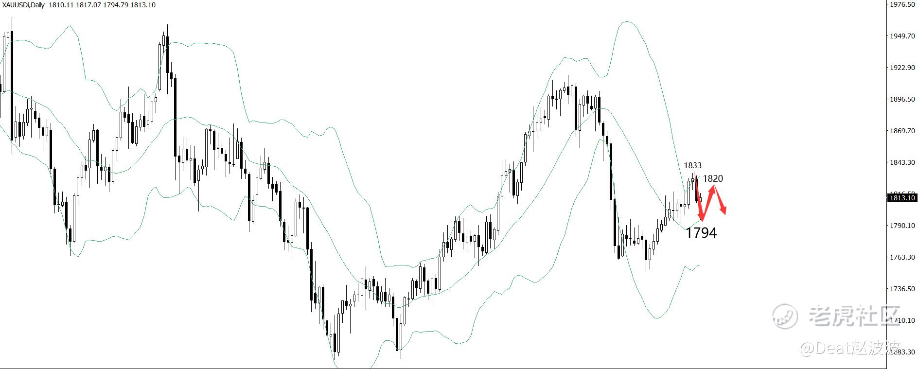 那么晚间黄金阴跌,触及1794附近开始反转,高位一波运行至1800附近,已然从均线,布林带中轨等等,都能看出黄金的低点到位,开始反弹的局势!所以说在文章的跟进,给予大家提一下,布林带中轨,20日均线的到位!你看到了吗?