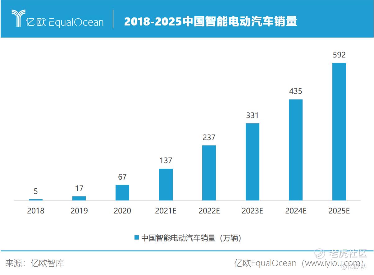 根据亿欧智库的观察,中国智能电动汽车市场远未到天花板,预计未来市场销量将持续增长,并将于2025年达到接近600万辆年销量。