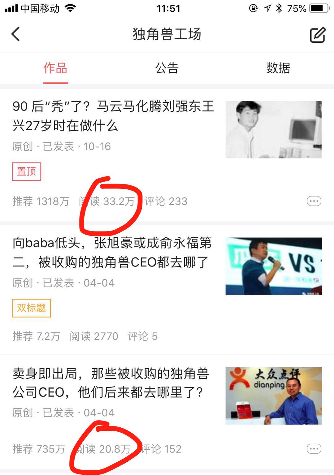 今日头条体系,阅读数几十万,推荐量需要上千万。