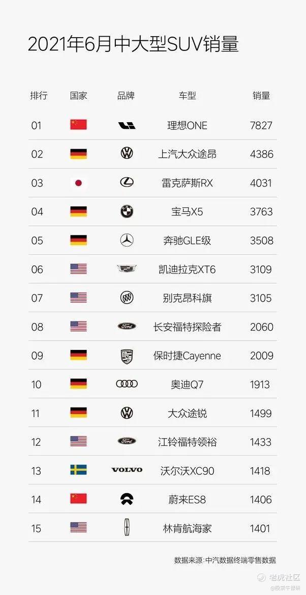 另外,从6月中大型SUV车型销量来看,理想ONE也是力压进口豪华SUV成为榜首,在同期新能源SUV销量榜单中也位居第二。