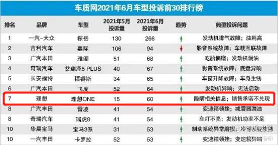 不久前,车质网公布了6月全国汽车投诉排行榜,理想ONE在6月的投诉量环比暴涨了4倍,排在6月投诉榜第7位,成为第一个进入车质网投诉TOP30榜单的造车新势力车型。对于客户的意见,理想汽车或许成了“惊弓之鸟”。