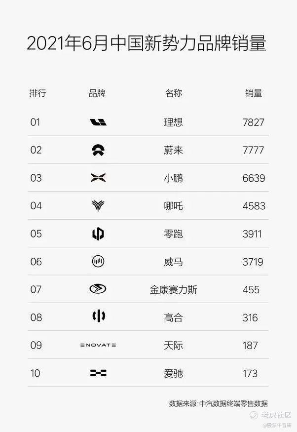 上图显示的数据来源于中汽数据终端零售数据披露的最新上险数据统计,理想ONE2021年6月上险量为7827辆。在中国新势力品牌销量排名中,理想汽车首次拿下新势力品牌第一名。