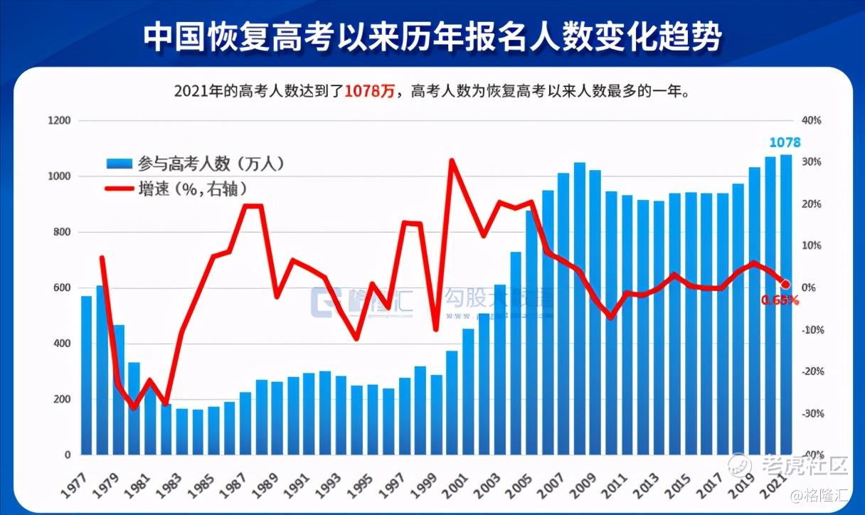 回顾这些历年来的高考数据变迁,可以解读的事情可以有很多。每一个数字变化的背后,不仅关乎家国命运的发展轨迹,关乎中国人口与行业的变迁趋势,也是每一个考生不一样的人生选择符号。