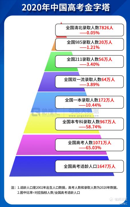 高校都有一定的地域保护,这导致了非本地生源的竞争更剧烈,越是高等学府,竞争越激烈。清华北大就不必说了,985、211加起来也不足百万,十分之一的概率都不够,更多人被挤在了一本以下那些含金量越来越低的二本高校。