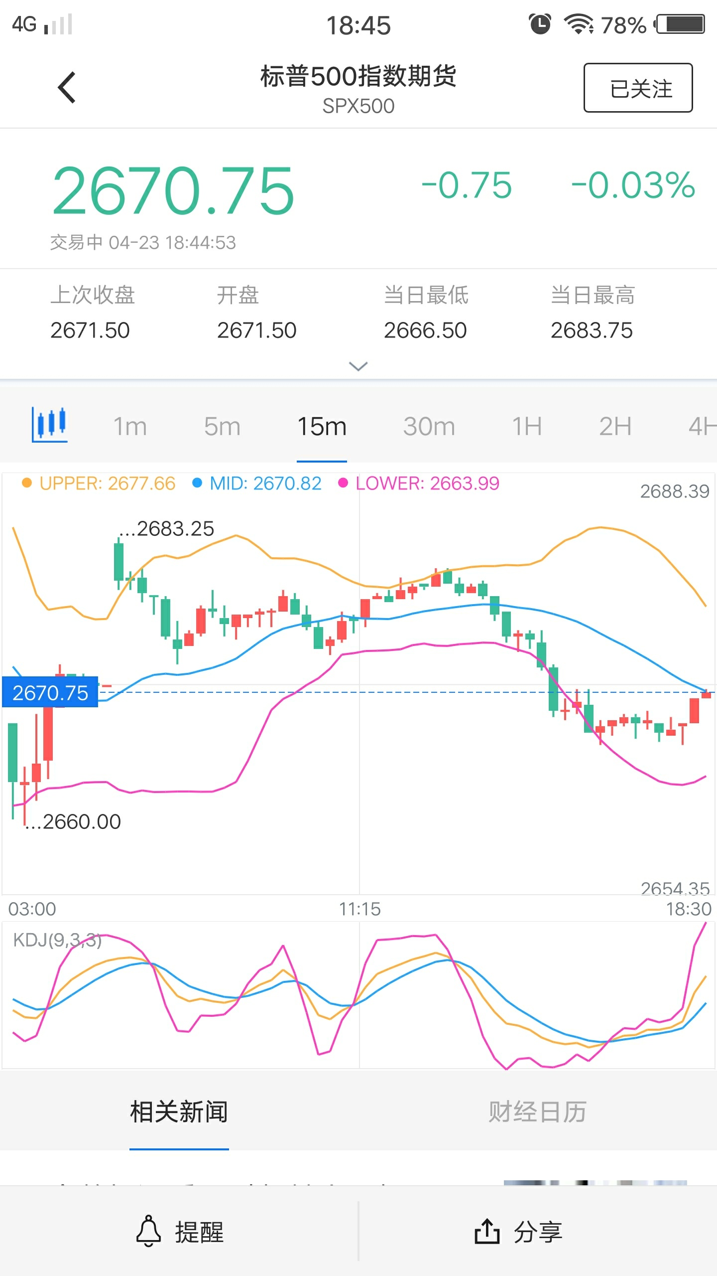 上周五继续前一天的TSMC悲观展望的影响,不只实体电子相关行业继续下挫,悲观情绪蔓延更是蔓延到电商软件行业,连亚马逊都跌了近2%。本来预计标普应该会在2680有个攻防战,想不到直接贯穿,改到2670攻防,甚至一度跌破2660,最终稍有拉回收在2670,跌了0.85%,但是整体振幅超过预想的1%,来到了1.2%。令人意外的是,过了一天反而跌得更多,世事难料啊。