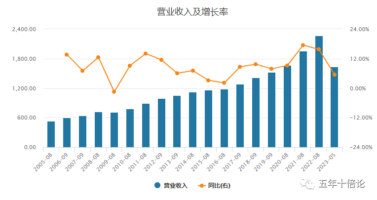 公司当前市值2156.50亿美元,PE(TTM)为35.7倍,股息率为0.6%,自1986年上市以来,累计上涨290倍,年化收益率16.28%,可见公司是一个非常优秀的长牛股。最近公司发布了2023年Q3季度的财报,我们开展分析,看其能否持续增长。