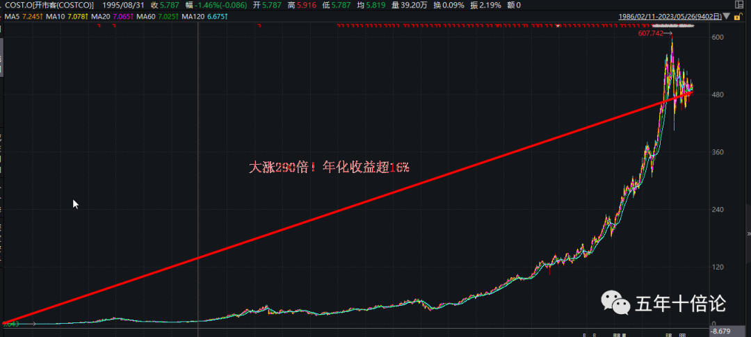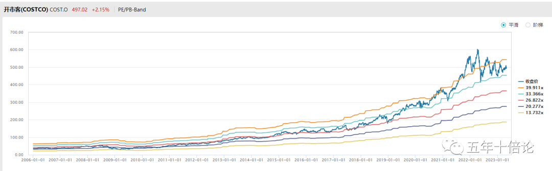 从历史的净利润增长情况看,好市多的净利润增速虽然有波动,但是整体还是维持在10%+的符合增速,非常符合好公司的定义,这也是好市多股价能长期增长的基础,30多年的历史已经证明了好市多优秀的商业能力,未来大概率也将持续证明。