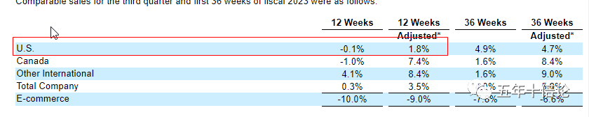 好市多的净销售额为526.04亿美元,上年同期为516.12亿美元,同比增长1.9%;会员费为10.44亿美元,上年同期为9.84亿美元,同比增长6.1%。说明公司主营业务基本是微增。根据财报显示,其中Q3同店销售额增长0.3%,其中美国地区同店销售额下降0.1%;加拿大地区同店销售额下降1.0%;其他国际地区同店销售额增长4.1%。电商销售额下降10.0%。