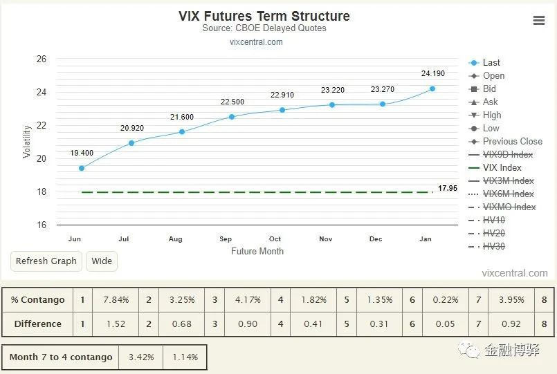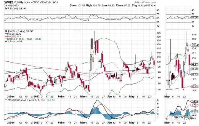 VIX和VVIX都低开低走,收阴收跌,仍然收在布林中线之上,三个指标还没质变。