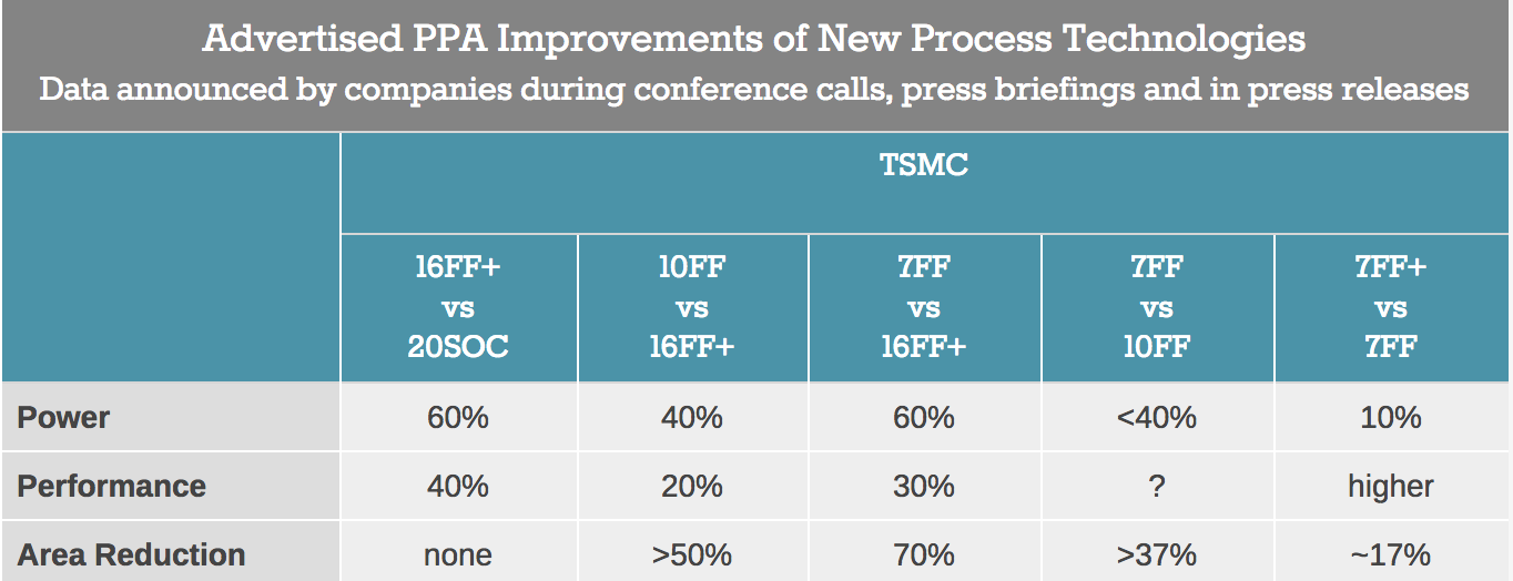 1. 参数提升巨大。将此7nm技术(CLN7FF)与台积电目前运用最广的16nm制程(CLN16FF+)做对比,前者可以将相同设计的芯片:面积缩小70%,功耗减小60%,性能提升30%。目前,台积电为18位客户做了7nm的流片。2018年底,会有超过50种不同的产品在台积电使用7nm流片。