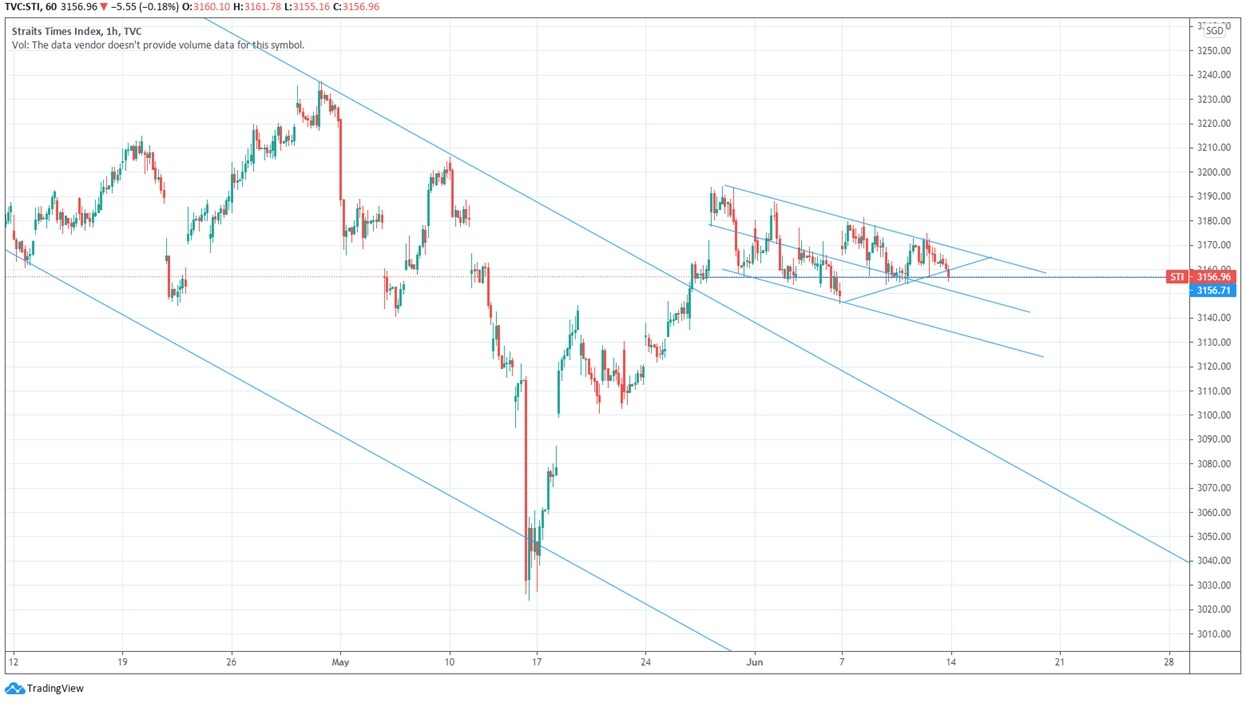 STI has to break up from the downtrend channel and clear the previous high of 3175.