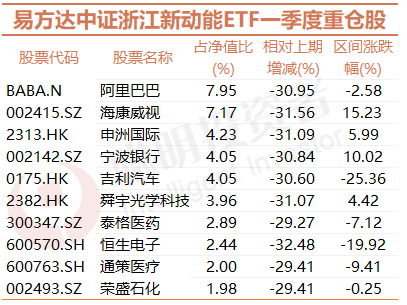 从基金一季报来看,重仓的股票均是知名的浙江省上市公司,