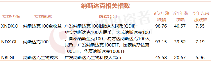 3只纳斯达克相关指数,一共有10只基金跟踪,其中,纳斯达克100(全收益)的表现相对较好。
