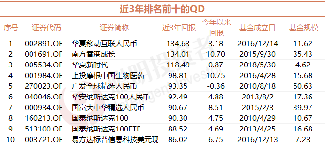 其中,规模最大的是华安纳指100指数,其次是国泰纳斯达克100ETF,