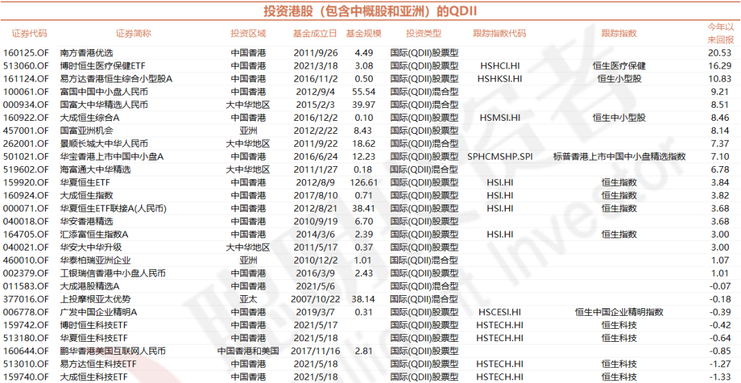聪投将投资港股和亚洲市场以及中概股的 QDII 归为一类,一共42只,
