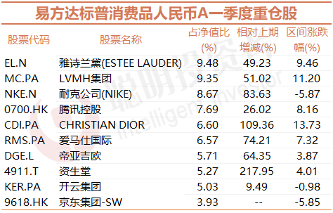 从基金一季报来看,重仓的股票均是知名的高端消费品牌,比如高端化妆品雅诗兰黛、箱包服饰顶级品牌LV、DIOR,知名运动品牌耐克、全球最大的洋酒公司帝亚吉欧、日本高端化妆品资生堂等。