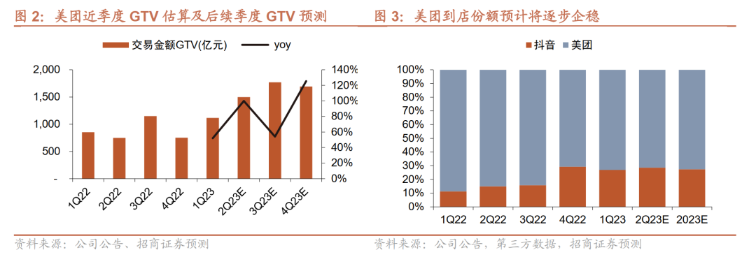 2、加强反击后收效显著,预计2023年美团GTV将实现高速增长,份额有望企稳回升