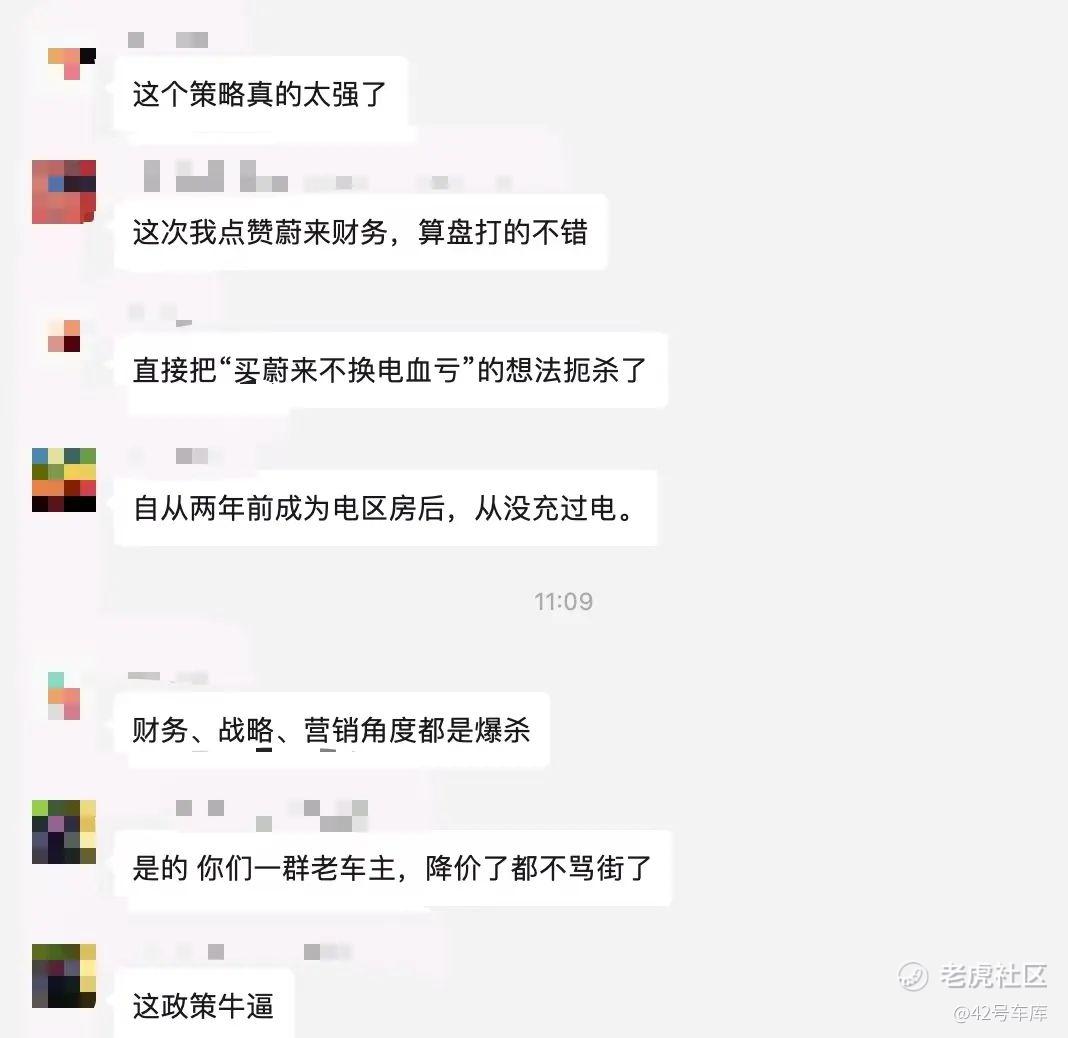 有意思的是,对于蔚来的这一动态,老车主们在我们社区的车主群里给出了下面的评价: