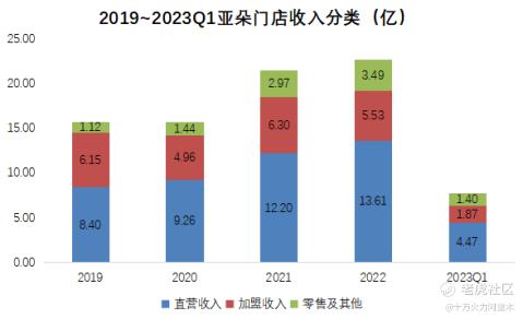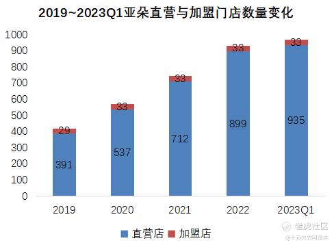 从店面来看,2019~2023年一季度,亚朵自营店从29家增长到33家,增幅为13.8%;而加盟店从391家增长到935家,增幅达139.1%。