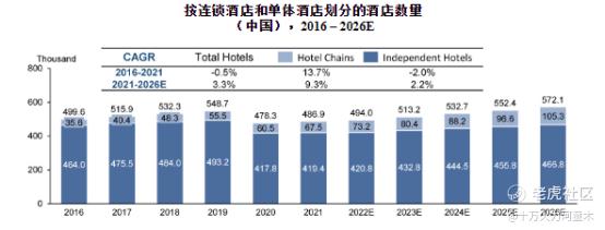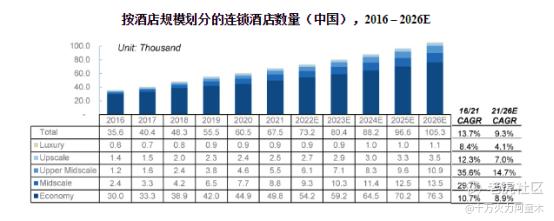 预计2021~2026年,国内中高端酒店的年复合增速高达14.7%。