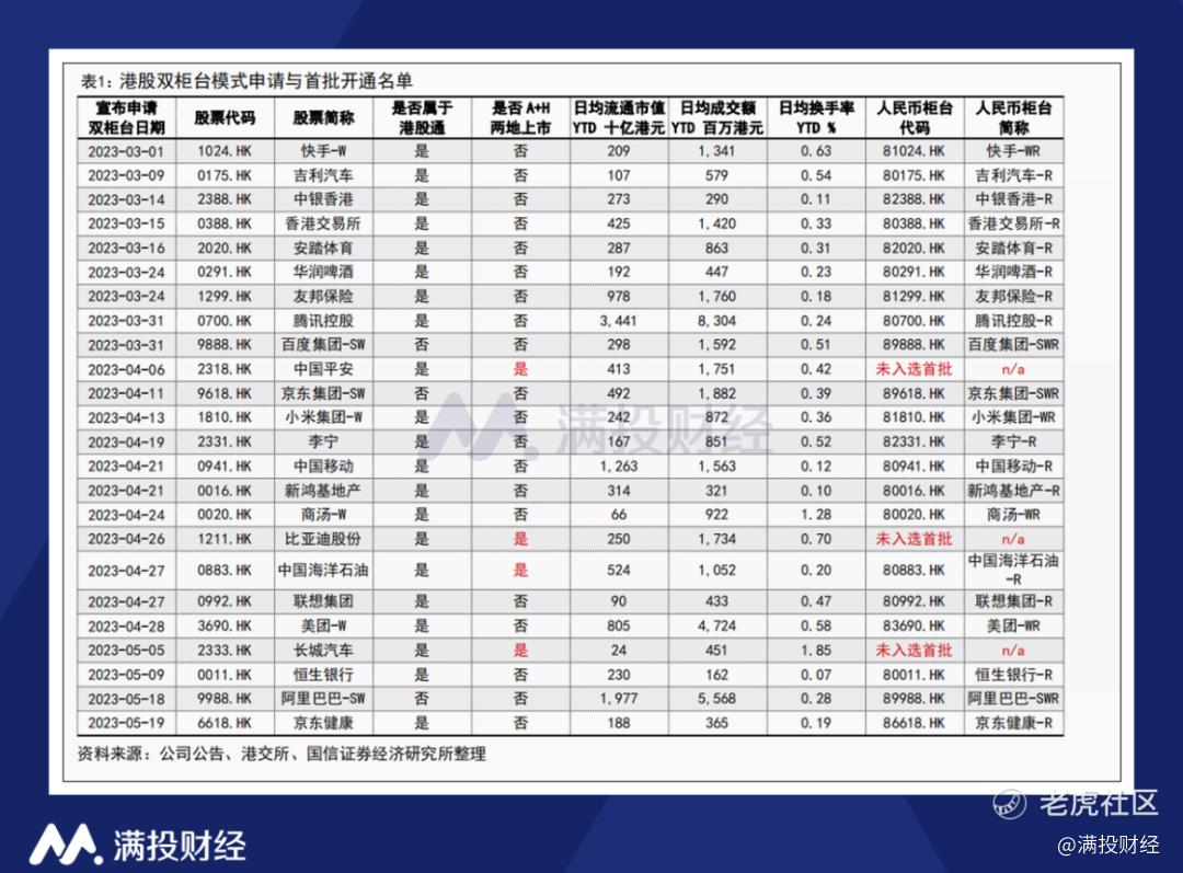 值得注意的是,在首批入选的24只双柜台标的中,中国海洋石油(00883.HK/600983.HK)是唯一一家A+H两地上市的股票,说明A+H公司并非不能入选双柜台,两地上市也未必是绝对的限制因素,可以关注后续可能会有更多相关标的。