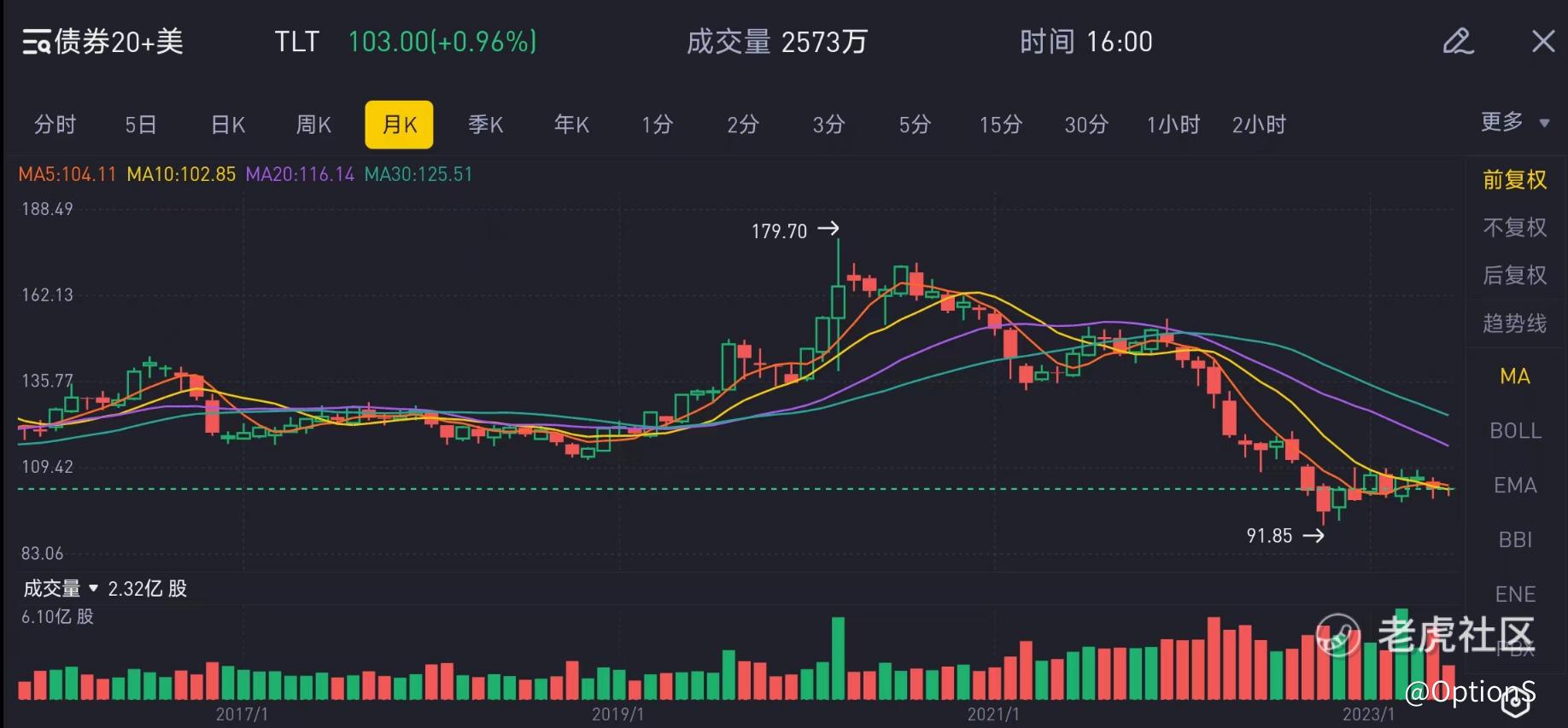 $债券20+美公债指数ETF-iShares(TLT)$ 20年国债,昨日收盘103.
