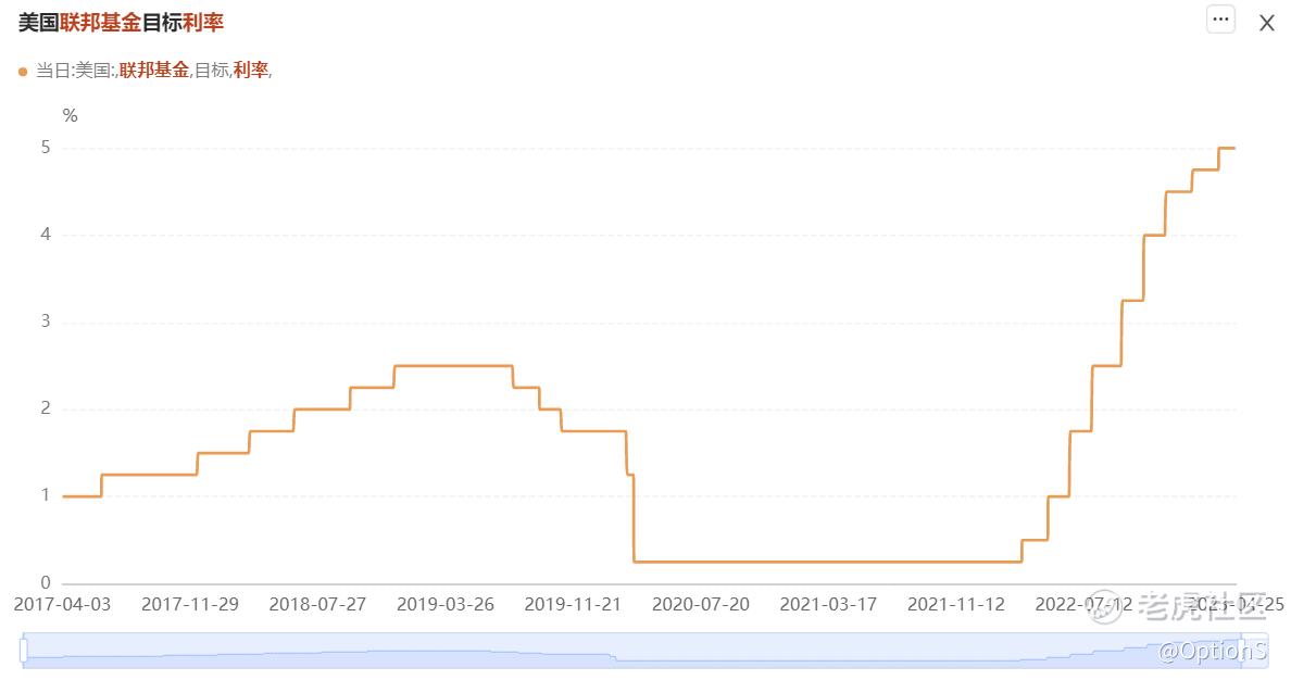 下图是最近6年联邦利率图,我们可以精确的和 $债券20+美公债指数ETF-iShares(TLT)$ , $债券指数ETF-iShares iBoxx投资级公司债(LQD)$ 放一起看看,看看走势拐点在什么时候。