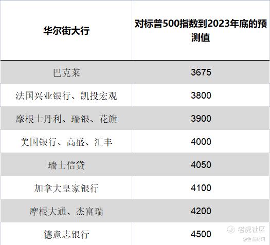 大家还记得去年年底的时候,我们做过华尔街对2023年美股及全球股市的一些预测。最悲观的巴克莱认为到2023年年底,标普500可能到3675点;摩根士丹利、高盛、美银、花旗、汇丰等对标普500的预测都低于或保持在4000点附近;而摩根大通、杰富瑞和德意志银行则相对乐观,认为标普500可能会在4200-4500点左右。