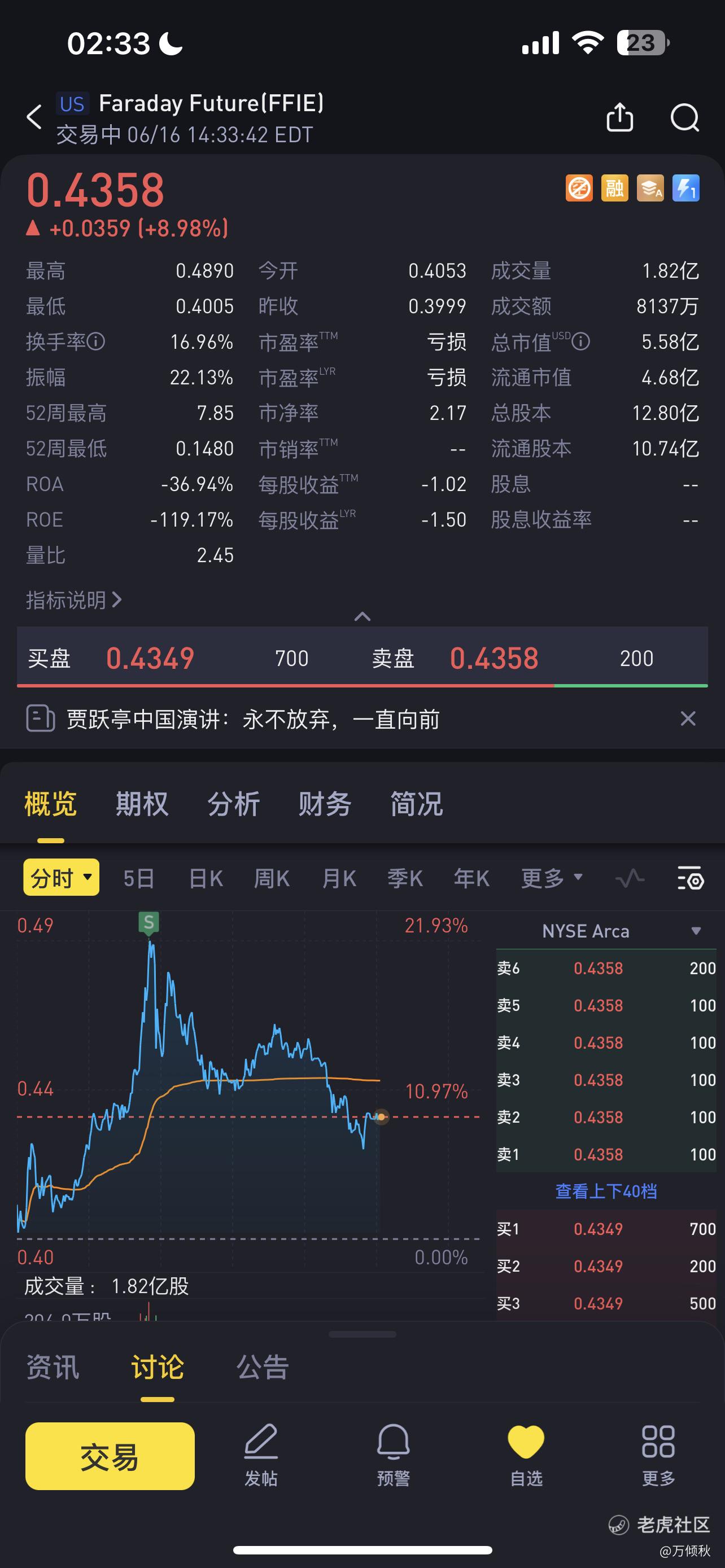 {"i18n":{"language":"zh_CN"},"detailType":1,"isChannel":false,"data":{"magic":2,"id":188068352606264,"tweetId":"188068352606264","gmtCreate":1686940446882,"gmtModify":1686940449955,"author":{"id":3496383107847708,"idStr":"3496383107847708","authorId":3496383107847708,"authorIdStr":"3496383107847708","name":"万倾秋","avatar":"https://static.tigerbbs.com/64f1b133ac626dd3f8f6e93d2b0ce507","vip":1,"userType":1,"introduction":"","boolIsFan":false,"boolIsHead":false,"crmLevel":2,"crmLevelSwitch":0,"currentWearingBadge":{"badgeId":"35ec162348d5460f88c959321e554969-3","templateUuid":"35ec162348d5460f88c959321e554969","name":"传说交易员","description":"证券或期货账户累计交易次数达到300次","bigImgUrl":"https://static.tigerbbs.com/656db16598a0b8f21429e10d6c1cb033","smallImgUrl":"https://static.tigerbbs.com/03f10910d4dd9234f9b5702a3342193a","grayImgUrl":"https://static.tigerbbs.com/0c767e35268feb729d50d3fa9a386c5a","redirectLinkEnabled":0,"hasAllocated":1,"isWearing":1,"stampPosition":0,"hasStamp":0,"allocationCount":1,"allocatedDate":"2022.04.07","exceedPercentage":"93.66%","individualDisplayEnabled":0},"individualDisplayBadges":[],"fanSize":34,"starInvestorFlag":false},"themes":[],"images":[{"img":"https://static.tigerbbs.com/edde26097152151a2439f60bf93a6a82","width":"1284","height":"2778"}],"coverImages":[{"img":"https://static.tigerbbs.com/edde26097152151a2439f60bf93a6a82","width":"1284","height":"2778"}],"html":"<html><head></head><body><a href=\"https://laohu8.com/S/FFIE\">$Faraday Future(FFIE)$ </a>告辞!\n<img src=\"https://static.tigerbbs.com/edde26097152151a2439f60bf93a6a82\" tg-width=\"1284\" tg-height=\"2778\"></body></html>","htmlText":"<html><head></head><body><a href=\"https://laohu8.com/S/FFIE\">$Faraday Future(FFIE)$ </a>告辞!\n<img src=\"https://static.tigerbbs.com/edde26097152151a2439f60bf93a6a82\" tg-width=\"1284\" tg-height=\"2778\"></body></html>","text":"$Faraday Future(FFIE)$ 告辞!","highlighted":2,"essential":1,"paper":1,"likeSize":5,"commentSize":18,"repostSize":0,"favoriteSize":0,"link":"https://laohu8.com/post/188068352606264","repostId":0,"isVote":1,"tweetType":1,"viewCount":5509,"commentLimit":10,"likeStatus":false,"favoriteStatus":false,"reportStatus":false,"symbols":["FFIE"],"verified":2,"subType":0,"readableState":1,"langContent":"CN","currentLanguage":"CN","warmUpFlag":false,"orderFlag":false,"shareable":true,"causeOfNotShareable":"","featuresForAnalytics":[],"commentAndTweetFlag":false,"andRepostAutoSelectedFlag":false,"upFlag":false,"length":26,"xxTargetLangEnum":"ZH_CN"},"commentList":[{"id":8012411,"commentId":"8012411","gmtCreate":1686958940145,"gmtModify":1686965818396,"authorId":3565008982518934,"author":{"id":3565008982518934,"idStr":"3565008982518934","authorId":3565008982518934,"name":"蔡小虎","avatar":"https://static.tigerbbs.com/17cd8f7d28cf053c7d51a9cdc2aeb9a6","vip":1,"crmLevel":2,"crmLevelSwitch":0,"individualDisplayBadges":[]},"repliedAuthorId":0,"objectId":188068352606264,"objectIdStr":"188068352606264","type":1,"supId":0,"supIdStr":"0","prevId":0,"prevIdStr":"0","content":"<span class=\"s1\">你他娘的是个人才,支持你。合股后再回来,几十个点到手了。羡慕啊!</span>","text":"<span class=\"s1\">你他娘的是个人才,支持你。合股后再回来,几十个点到手了。羡慕啊!</span>","html":"<span class=\"s1\">你他娘的是个人才,支持你。合股后再回来,几十个点到手了。羡慕啊!</span>","likeSize":0,"commentSize":3,"subComments":[{"id":8012701,"commentId":"8012701","gmtCreate":1686992066029,"gmtModify":1686992069588,"authorId":3565008982518934,"author":{"id":3565008982518934,"idStr":"3565008982518934","authorId":3565008982518934,"name":"蔡小虎","avatar":"https://static.tigerbbs.com/17cd8f7d28cf053c7d51a9cdc2aeb9a6","vip":1,"crmLevel":2,"crmLevelSwitch":0,"individualDisplayBadges":[]},"repliedAuthorId":0,"objectId":188068352606264,"objectIdStr":"188068352606264","type":1,"supId":8012411,"supIdStr":"8012411","prevId":0,"prevIdStr":"0","content":"<span class=\"s1\">加油!</span>","text":"<span class=\"s1\">加油!</span>","html":"<span class=\"s1\">加油!</span>","disclaimerType":0},{"id":8012700,"commentId":"8012700","gmtCreate":1686991982828,"gmtModify":1686991986413,"authorId":3496383107847708,"author":{"id":3496383107847708,"idStr":"3496383107847708","authorId":3496383107847708,"name":"万倾秋","avatar":"https://static.tigerbbs.com/64f1b133ac626dd3f8f6e93d2b0ce507","vip":1,"currentWearingBadge":{"badgeId":"35ec162348d5460f88c959321e554969-3","templateUuid":"35ec162348d5460f88c959321e554969","name":"传说交易员","description":"证券或期货账户累计交易次数达到300次","bigImgUrl":"https://static.tigerbbs.com/656db16598a0b8f21429e10d6c1cb033","smallImgUrl":"https://static.tigerbbs.com/03f10910d4dd9234f9b5702a3342193a","grayImgUrl":"https://static.tigerbbs.com/0c767e35268feb729d50d3fa9a386c5a","redirectLinkEnabled":0,"hasAllocated":1,"isWearing":1,"stampPosition":0,"hasStamp":0,"allocationCount":1,"allocatedDate":"2022.04.07","exceedPercentage":"93.66%","individualDisplayEnabled":0,"individualDisplaySort":0,"categoryType":1100},"crmLevel":2,"crmLevelSwitch":0,"individualDisplayBadges":[]},"repliedAuthorId":0,"objectId":188068352606264,"objectIdStr":"188068352606264","type":1,"supId":8012411,"supIdStr":"8012411","prevId":0,"prevIdStr":"0","content":"<span class=\"s1\">股市的定律 人取我弃 人弃我取 希望你也能发财[害羞]</span>","text":"<span class=\"s1\">股市的定律 人取我弃 人弃我取 希望你也能发财[害羞]</span>","html":"<span class=\"s1\">股市的定律 人取我弃 人弃我取 希望你也能发财[害羞]</span>","disclaimerType":0},{"id":8012698,"commentId":"8012698","gmtCreate":1686991891729,"gmtModify":1686991895317,"authorId":3496383107847708,"author":{"id":3496383107847708,"idStr":"3496383107847708","authorId":3496383107847708,"name":"万倾秋","avatar":"https://static.tigerbbs.com/64f1b133ac626dd3f8