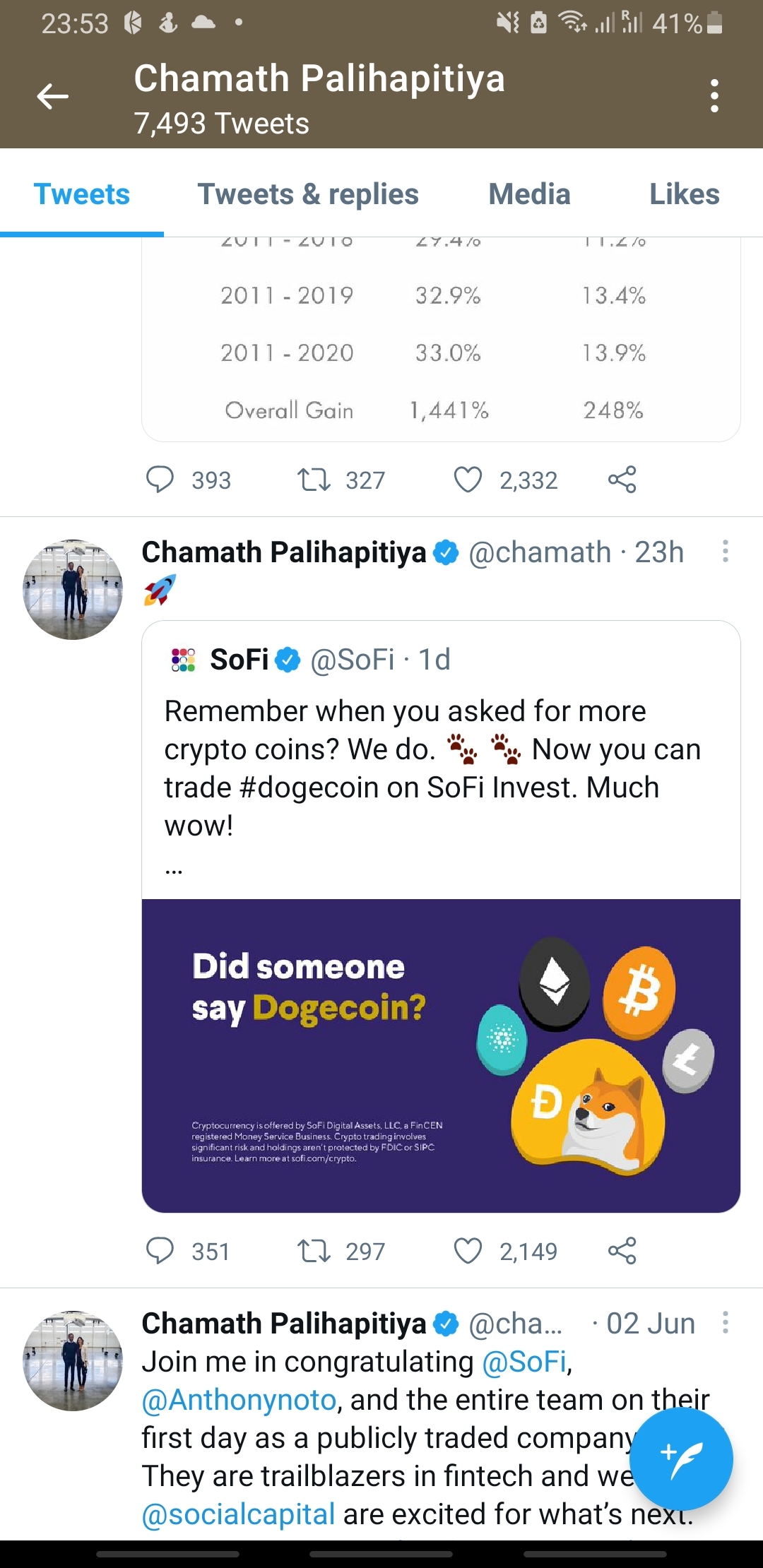 {"i18n":{"language":"zh_CN"},"detailType":1,"isChannel":false,"data":{"magic":2,"id":188895344,"tweetId":"188895344","gmtCreate":1623427058188,"gmtModify":1631884835747,"author":{"id":3546780849196153,"idStr":"3546780849196153","authorId":3546780849196153,"authorIdStr":"3546780849196153","name":"ValueTrader","avatar":"https://static.tigerbbs.com/5abfef61654231603b066fa39ed531ff","vip":1,"userType":1,"introduction":"","boolIsFan":false,"boolIsHead":false,"crmLevel":11,"crmLevelSwitch":0,"individualDisplayBadges":[],"fanSize":211,"starInvestorFlag":false},"themes":[],"images":[{"img":"https://static.tigerbbs.com/44cb06aa5c7db9f8151d26f9987d453c","width":"1080","height":"2220"}],"coverImages":[{"img":"https://static.tigerbbs.com/44cb06aa5c7db9f8151d26f9987d453c","width":"1080","height":"2220"}],"extraTitle":"","html":"<html><head></head><body><p>坦白说,这给我一种炒冷饭的感觉。究竟狗币会不会带<a href=\"https://laohu8.com/S/SOFI\">$SoFi Technologies Inc.(SOFI)$</a>飞去月球呢?我就拭目以待吧,毕竟打算拿3-5年呢。</p><p><img src=\"https://static.tigerbbs.com/44cb06aa5c7db9f8151d26f9987d453c\" tg-width=\"1080\" tg-height=\"2220\"></p></body></html>","htmlText":"<html><head></head><body><p>坦白说,这给我一种炒冷饭的感觉。究竟狗币会不会带<a href=\"https://laohu8.com/S/SOFI\">$SoFi Technologies Inc.(SOFI)$</a>飞去月球呢?我就拭目以待吧,毕竟打算拿3-5年呢。</p><p><img src=\"https://static.tigerbbs.com/44cb06aa5c7db9f8151d26f9987d453c\" tg-width=\"1080\" tg-height=\"2220\"></p></body></html>","text":"坦白说,这给我一种炒冷饭的感觉。究竟狗币会不会带$SoFi Technologies Inc.(SOFI)$飞去月球呢?我就拭目以待吧,毕竟打算拿3-5年呢。","highlighted":1,"essential":1,"paper":1,"likeSize":2,"commentSize":0,"repostSize":0,"favoriteSize":0,"link":"https://laohu8.com/post/188895344","repostId":0,"isVote":1,"tweetType":1,"viewCount":1161,"commentLimit":10,"likeStatus":false,"favoriteStatus":false,"reportStatus":false,"symbols":["SOFI"],"verified":2,"subType":0,"readableState":1,"langContent":"CN","currentLanguage":"CN","warmUpFlag":false,"orderFlag":false,"shareable":true,"causeOfNotShareable":"","featuresForAnalytics":[],"commentAndTweetFlag":false,"andRepostAutoSelectedFlag":false,"upFlag":false,"length":118,"xxTargetLangEnum":"ZH_CN"},"commentList":[],"isCommentEnd":true,"isTiger":false,"isWeiXinMini":false,"url":"/m/post/188895344"}