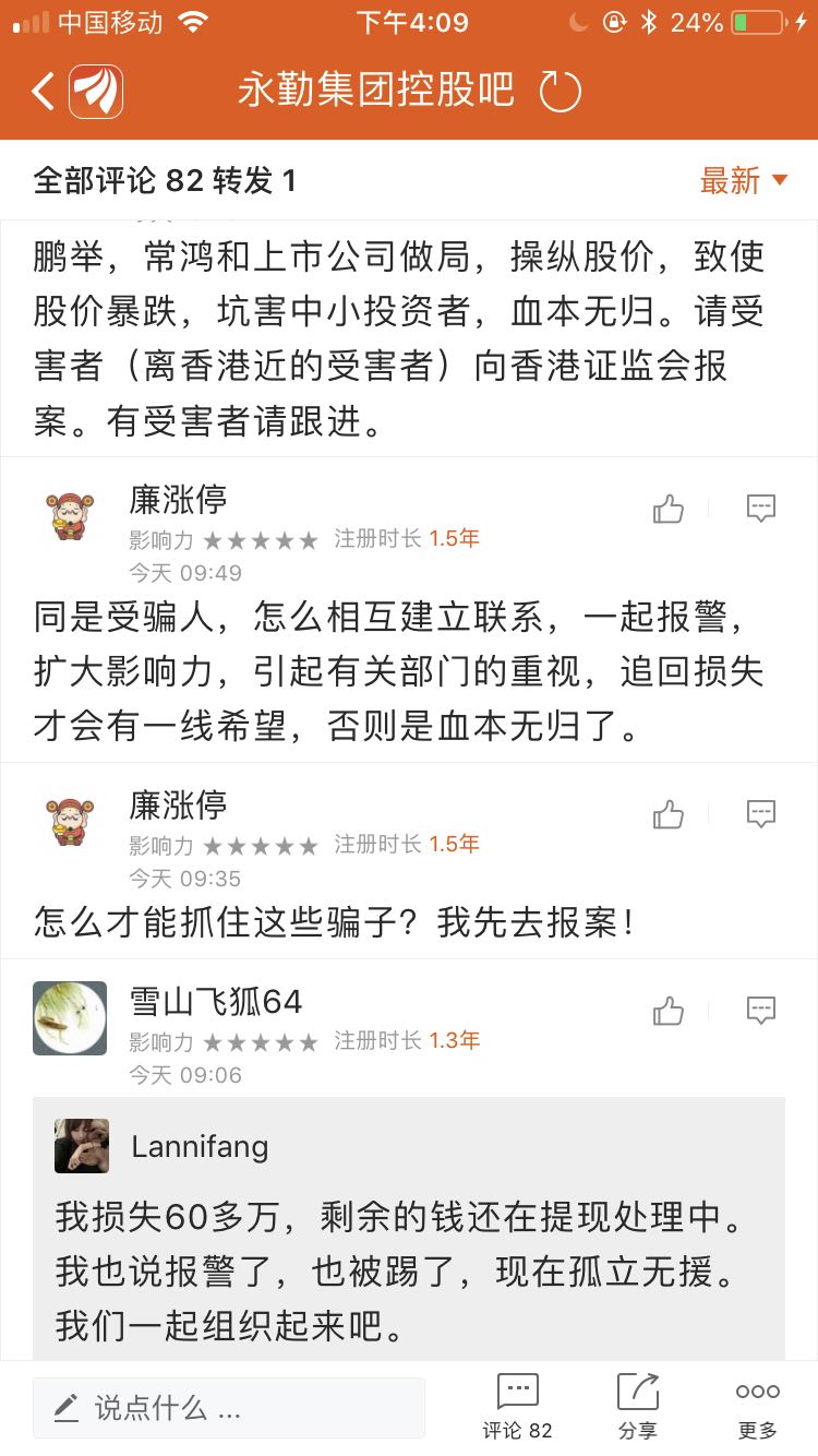 受害者A:我们都是受害者,2018年3月份左右开始,有四位四位老师,鹏举,常鸿,孔方,东来老师,在直播间里给大家讲股票,技术很棒,房间里大概有最多的时候有四五百人,四月下旬左右,他们说有一个香港姓魏的老板,准备要和他们一块儿来做市值,要上主板,让房间的同学开港股账户,盈透证券旗下的博林国际,然后让入金,不入的同学就不给房间密码,并且他们许诺说是,能赚1.5倍以上,挣了钱以后拿利润来a股杠杆,在她们的蛊惑下好多人都投入了资金,5月2号3号4号,叫房间的学员大量买入,大量买入永勤集团股票,然后他们说他们要去香港,看着他们做市值,在房间里说不让卖出股票不让做t,周一开始股票就大跌,他们房间也打不开了,常鸿说他有39岁,声音沙哑,做短线为主,说他是秦皇岛人鹏举说他也是39岁,原来做过操盘手,他很有煽动和蛊惑力,他是嗓音洪亮,说他是山西人,东l来老师是一个爱抽烟,东北口音的中年男人。