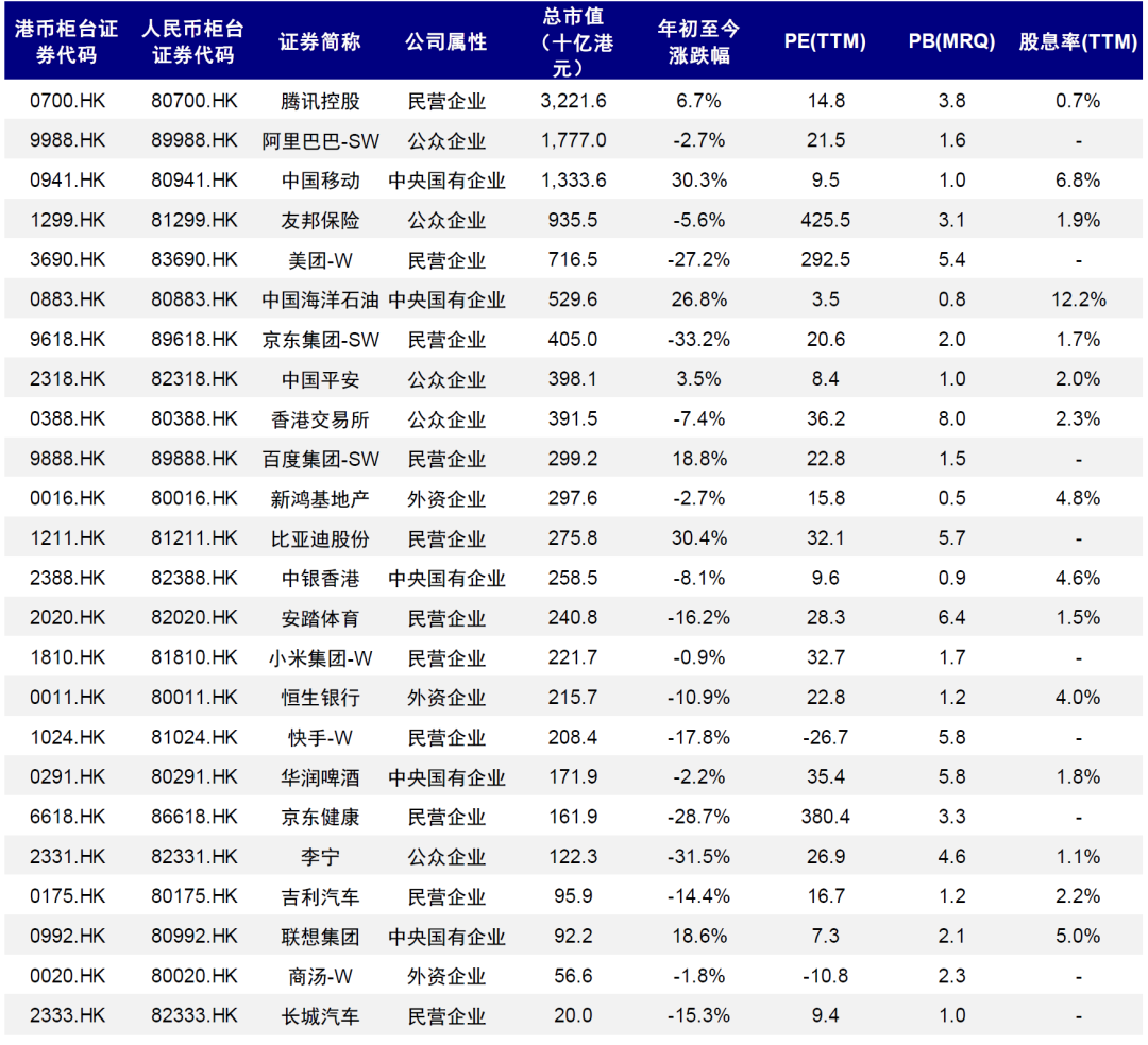 在此背景下,继续持有离岸人民币的投资者,例如大型金融机构和主权财富基金等,其目的应为保留部分人民币计价的敞口。而在人民币交易柜台制度下,其可直接用离岸人民币买入以人民币计价的港股,从而实现保留人民币计价资产的目的。
