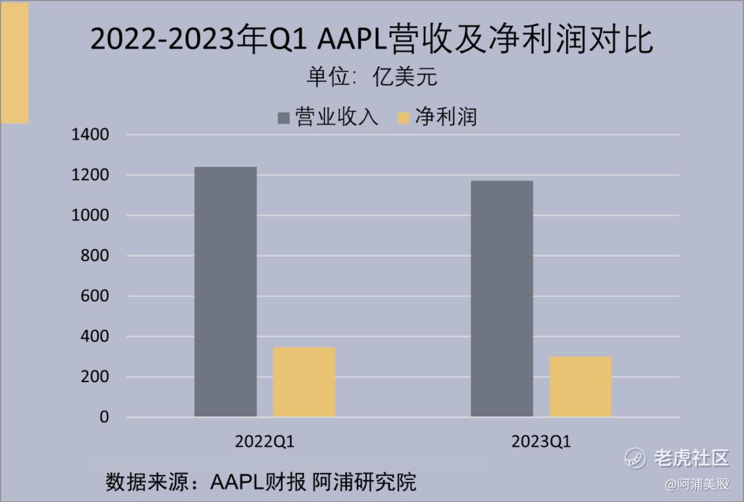 根据AAPL 2022-2023年Q1的财报显示,AAPL第一季度综合净收入1172亿美元,上年同期1239亿美元,同比下降5.48%,毛利润503.3亿美元,上年同期542.4亿美元,同比下降7.21%,净利润300亿美元,上年同期346.3亿美元,同比下降13.38%;之所以出现这种状况,是因为股市的悲观情绪不断拖累苹果股价从 2022 年的 170 美元高位和过去几个月的 150 美元高位回落,阻止了其突破这些阻力位的尝试,这也归因于过去几个月对经济衰退的担忧和富士康的逆风;除此之外,由于业务的成熟性,其财务业绩和资产负债表也有一些不足之处。
