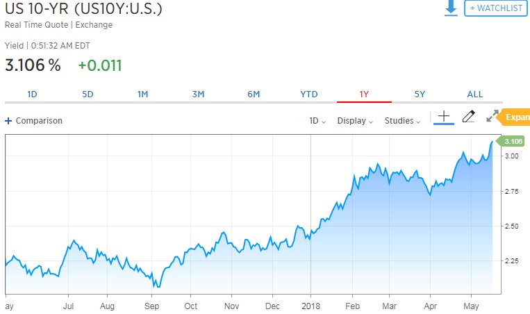 然而,美国10年国债收益率今年已经稳上3%的“心理阈值”, 很多大佬预言美国国债维持了30多年的牛市已经结束: 这意味着,全球金融危机后,因为融资成本几乎为0的不断膨胀的庞大债基的信贷成本,会迅速上升,资本市场压力会迅速增长,盛极而衰的可能性已悄悄增强。很多机构分析指出,股市在10年国债3-3.5%的区间内,很可能会有大的调整,更别说如果10年国债收益率如果迅速突破3.5%了。