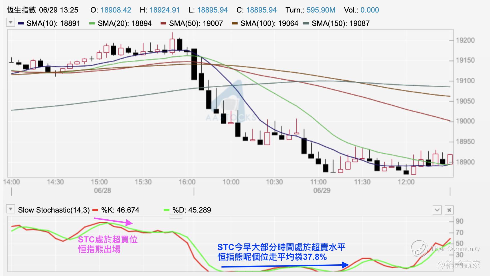 㖊日拣咗只 $HS#HSI RP2602J.P(67696)$ ,㖊日最后一小时发出买入讯号,平均买入价为0.041元。只熊带到今朝,本来谂住五分钟图Slow STC(14,3)两线回落至超卖水平之后,当行完一趟Swing Trade就走,结果呢个超卖几乎行咗一个朝早,去到11点35分时Slow STC(14,3)两线高于20以上,数值上已经离开咗超卖范围(有啲人系用30/70以量度超卖/超买,但我惯常用20/80),换言之由今朝早至11点35分呢段时间,Slow STC(14,3)全程都处于超卖状态,边一个位走真系随得你,因为点计都系正数。