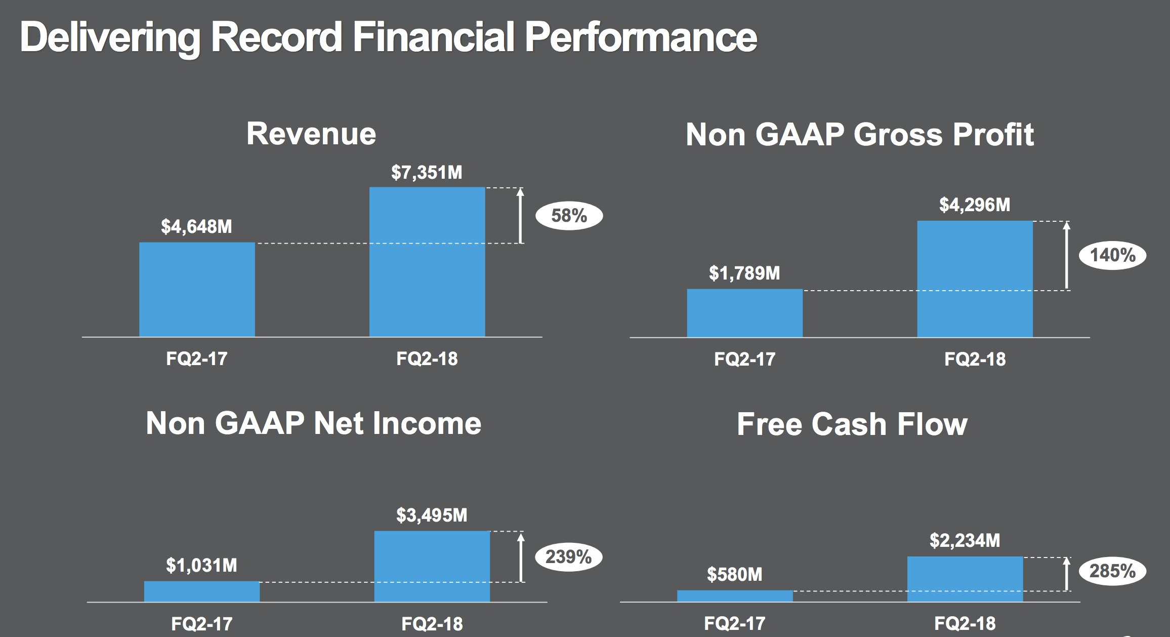 收益增长58%,自由现金流更是达到22亿美金,同比增长285%。