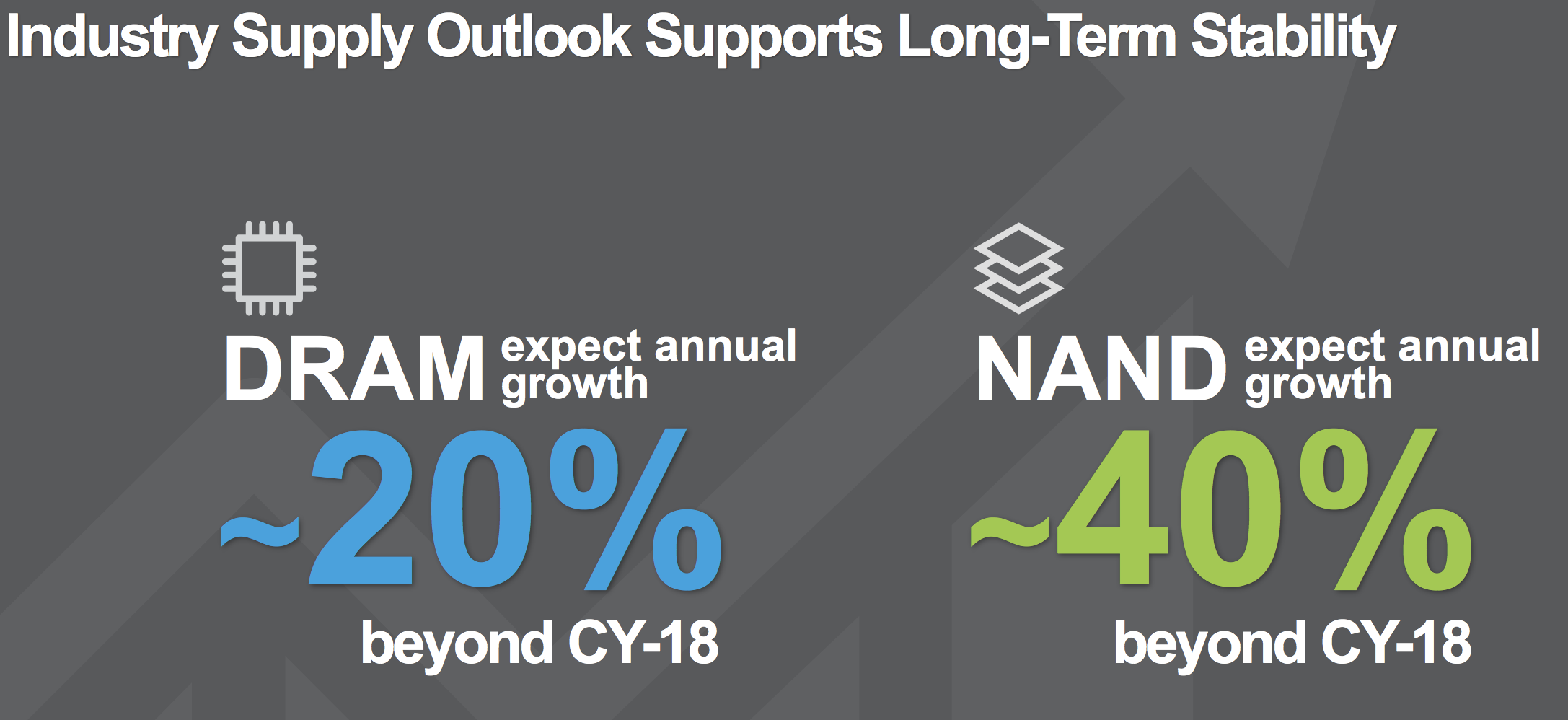 DRAM预计年增长率约20%,NAND预计年增长率约40%。