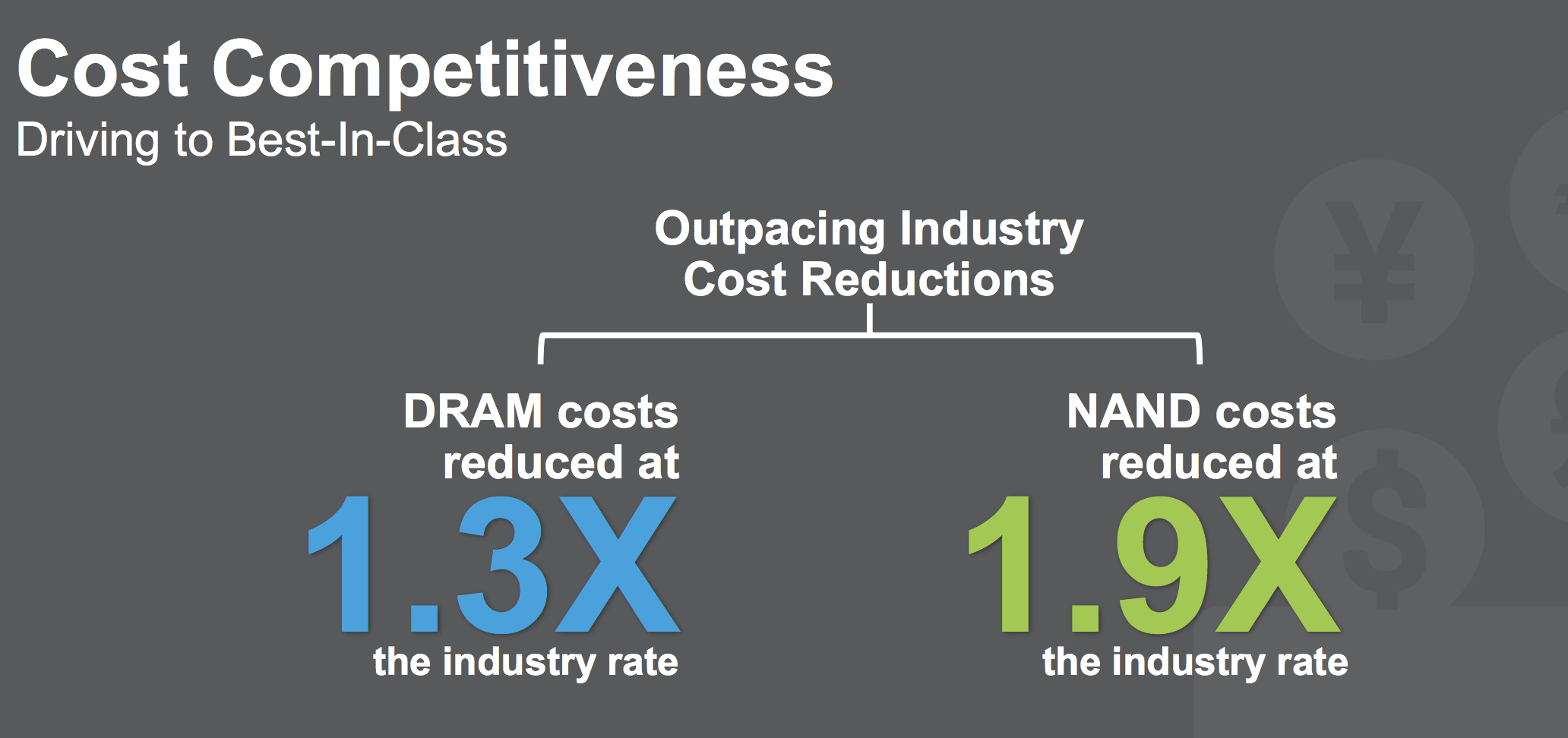 DRAM成本降的比业界同行快30%,NAND的成本则降的更快。