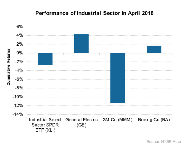 工业行业ETF XLI,在2018年4月下行了2.8%: