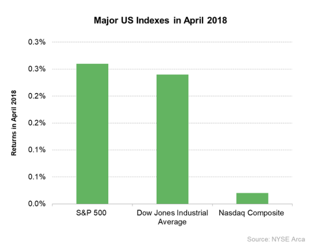 2018年4月的美国股市跌宕起伏。在2月和3月,美股经历了实质的大调整。标普500大盘在2月和3月一共下行了6.4%,但在4月上行了0.26%: