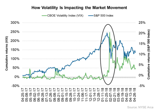 虽然标普500大盘的表现在4月持平,CBOE波动指数,却下降了24%: