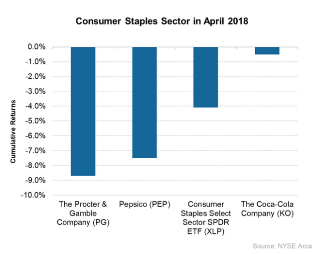 必需消费品行业ETF $(XLP)$,在2018年4月下行了4.1%:
