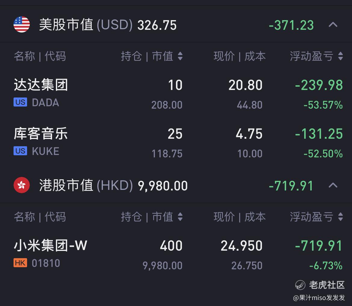 这个时候的行情 惨不忍睹 年初被套到现在 港美股被套 A股也被套 还是玩基金吧 实力不允许玩股票 没钱加仓 只能静等花开了😭😭