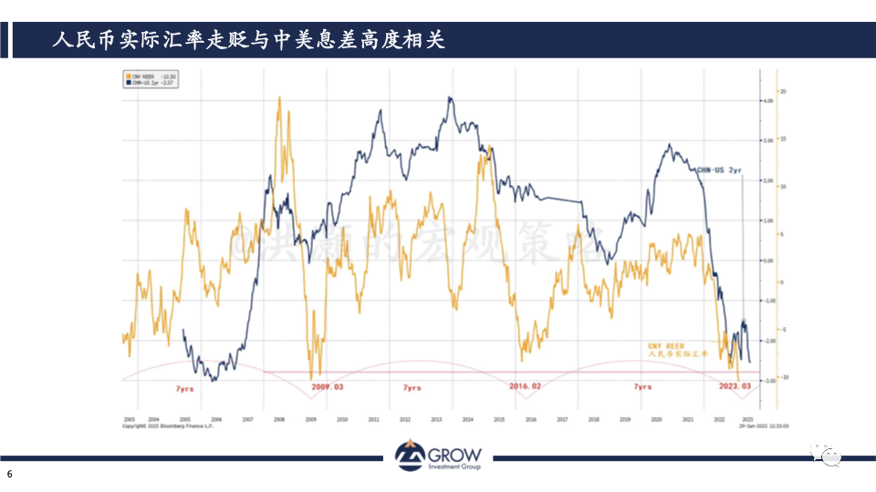 图五:人民币实际汇率与中美息差高度相关;中国货币政策“以我为主”。