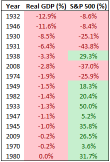 比如,很多时候,经济衰退时,股市却可能还在高歌猛进,比如2009年,真实GDP其实是萎缩了0.2%,而股市却上升了26.5%: