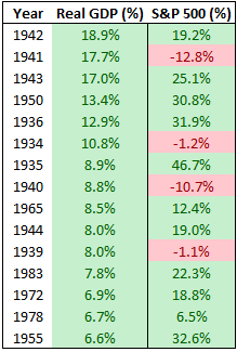 而当经济鼎盛时,股市也可能出现负回报: