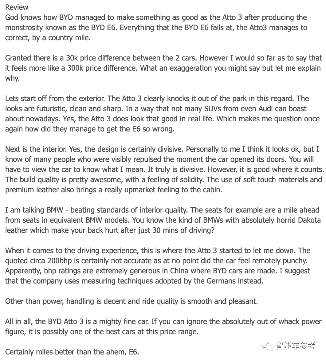 也有人评论,比亚迪ATTO 3功能齐全,外观时尚,内饰时髦,动力和操控性也非常不错,“是这个价格范围内最好的汽车之一”。