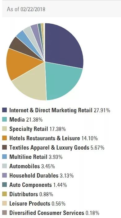 XLY的细分行业组成里,28%是新零售(电商,直接营销零售),媒体21.38%,专营零售商17.38%,酒店饭店娱乐14%,服装和奢侈品5.67%,等等: