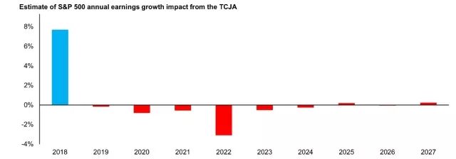 然而,投资者最终关心的是,税改对各行业的盈利驱动有多大。事实上,同样的,税改对美国上市公司的2018年盈利能力驱动最大,而过了2018年,税改的正面作用消失: